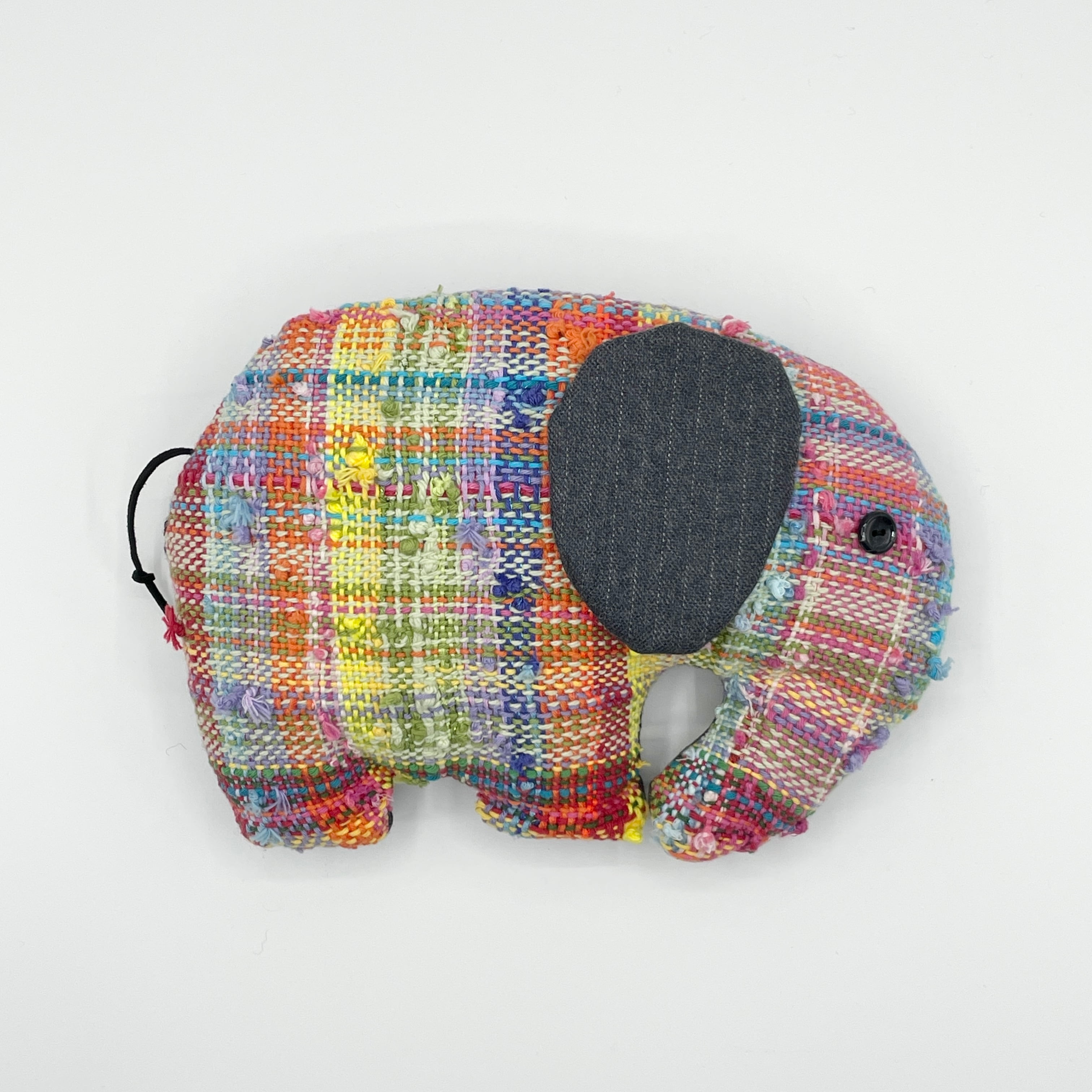 さをり織りを使った、世界にたったひとつのかわいいゾウのクッションです。プレゼントにもぴったり。反物の使用の仕方も一つ一つ異なり個性が出ています。使用されている反物は全てかたるべのメンバーが織ったもので、一つとして同じ顔のないものとなっています。