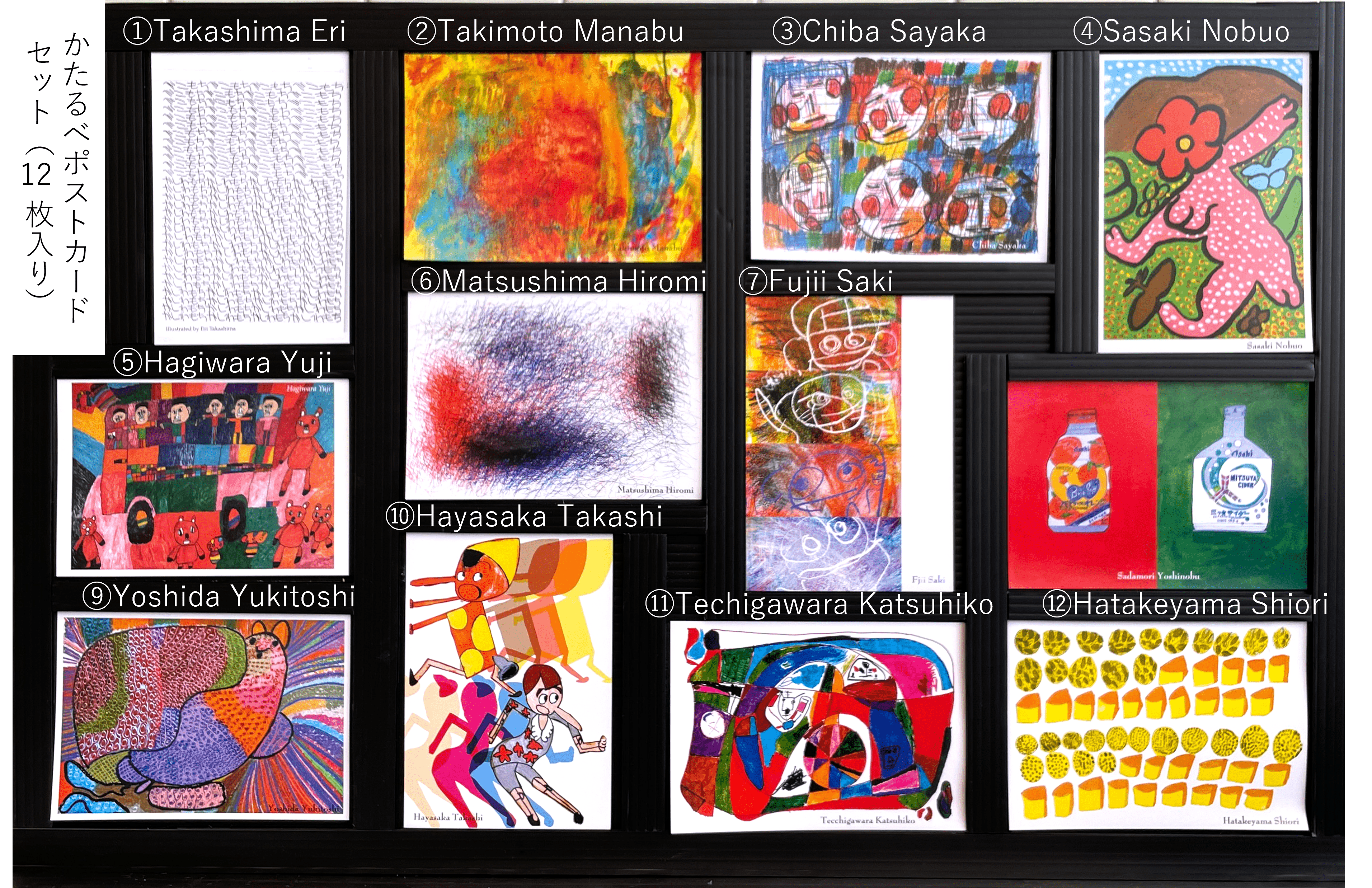 かたるべの森美術館で活動するアーティストたちのポストカードです。アーティストが放つ独特な異世界ワールドが小さな紙にぎゅっと詰まっています。